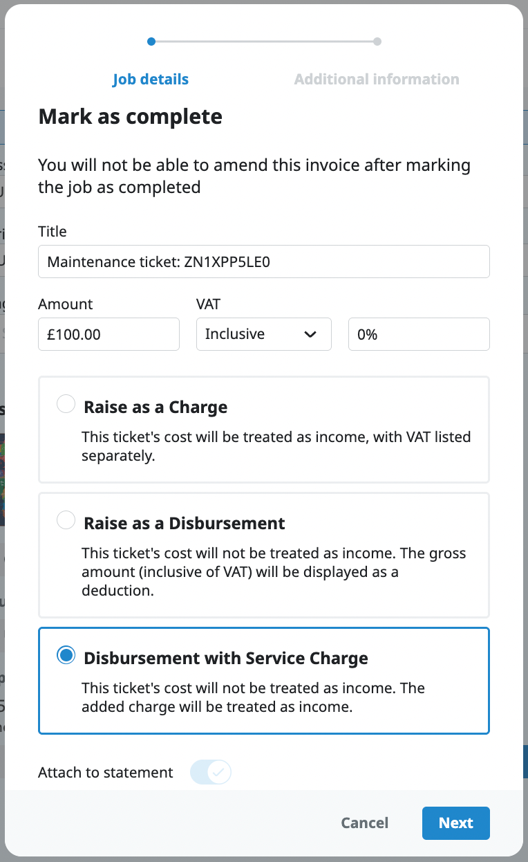 You can now add a service change to a statement when closing a maintenance tickets and track this in Maintenance and P&L reports.