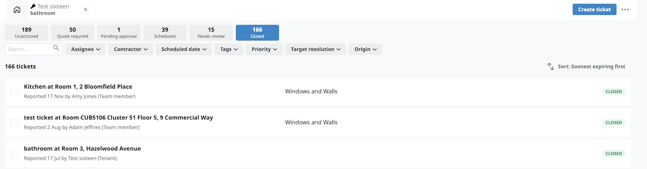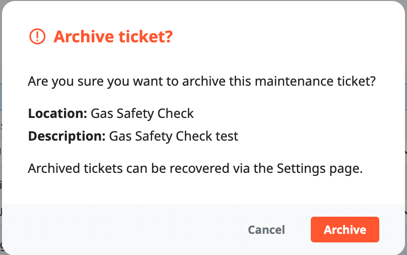 You can archive a maintenance ticket that is in a Closed status. The archiving tickets function will remove the tickets from the main maintenance dashboard.