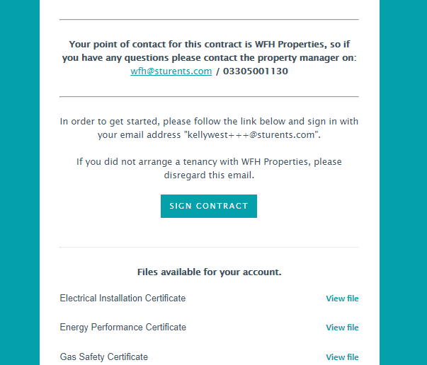 You can share certain files that you upload to the File Manager with prospective tenants before they sign a tenancy contract for a property. The files are included in the initial contract to sign email along with the How to Rent guide.