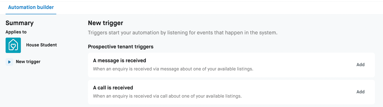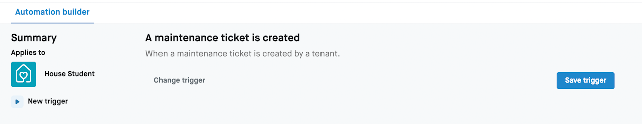 After you added a trigger, you are now on the Automation builder page where you can add the triggers, conditions and actions. Click Save trigger.