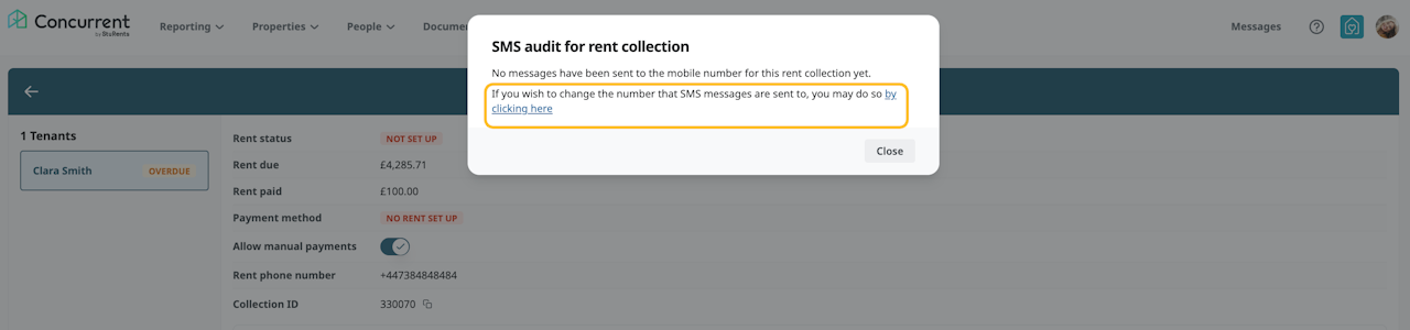 From there, you can click on the option to change their phone number where the SMS messages regarding their rent are delivered.