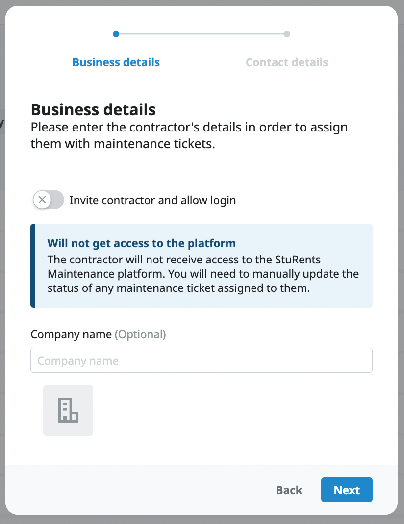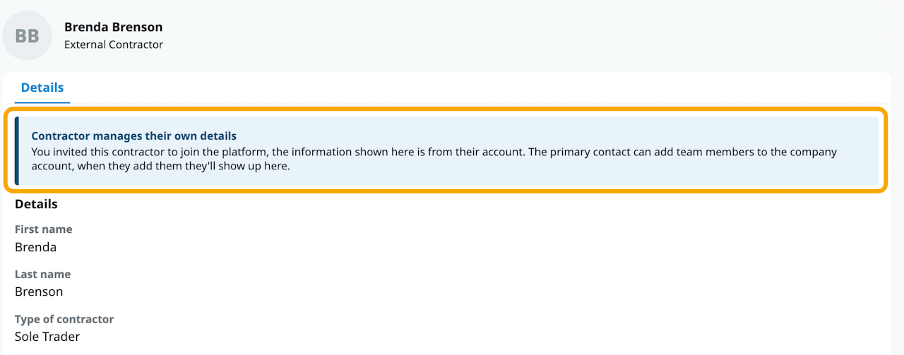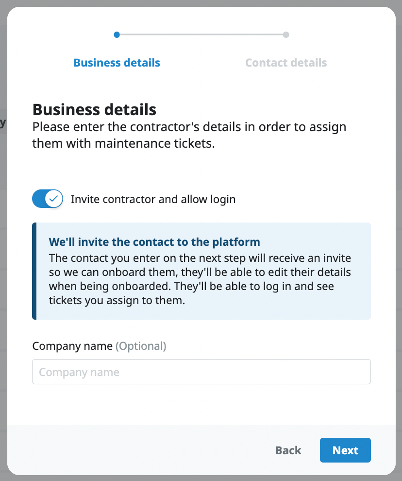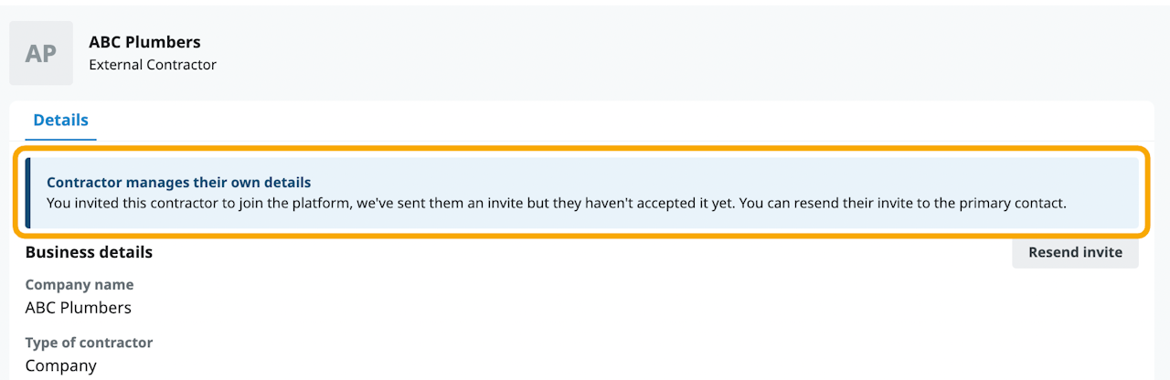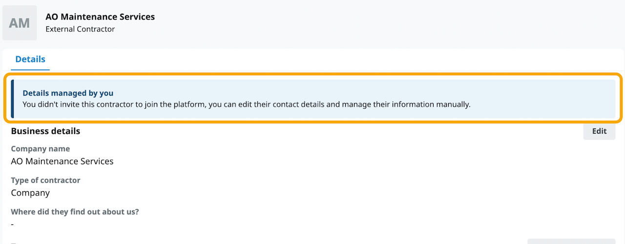 You can create a maintenance contractor profile in the Contact Centre. There are two types of contractors: