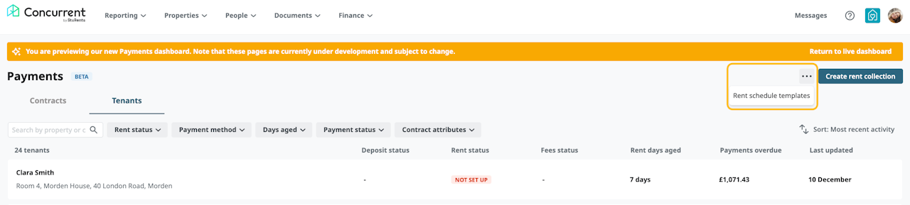 Select Rent schedule template option from the actions menu (...) in the top right.