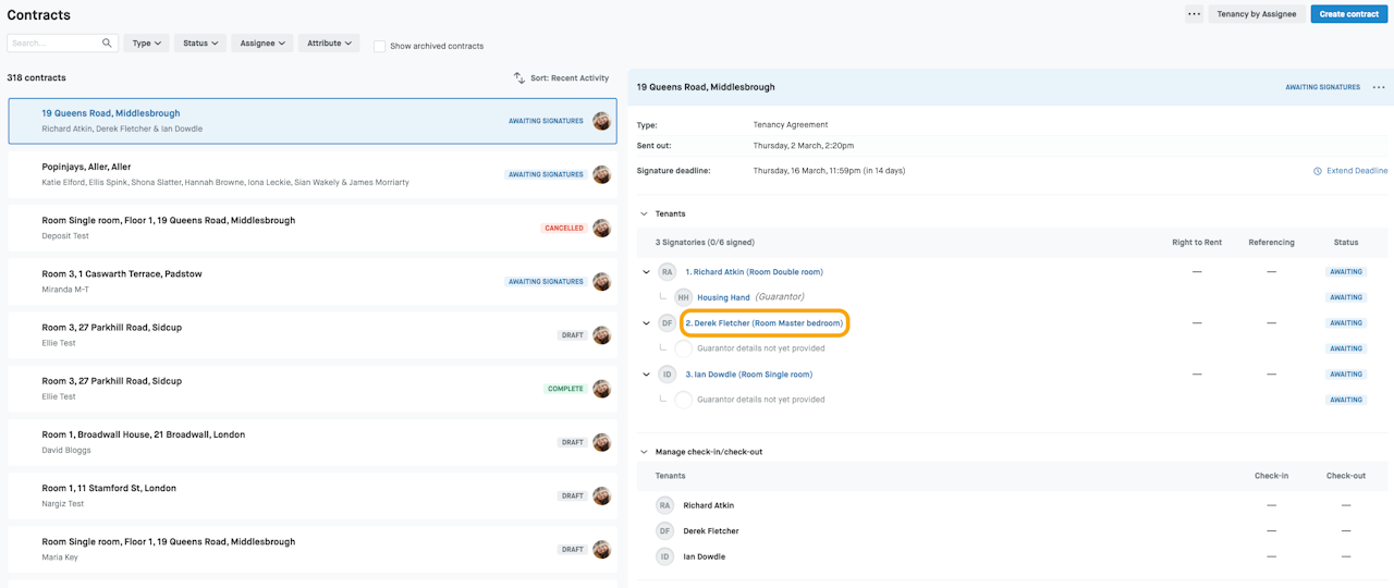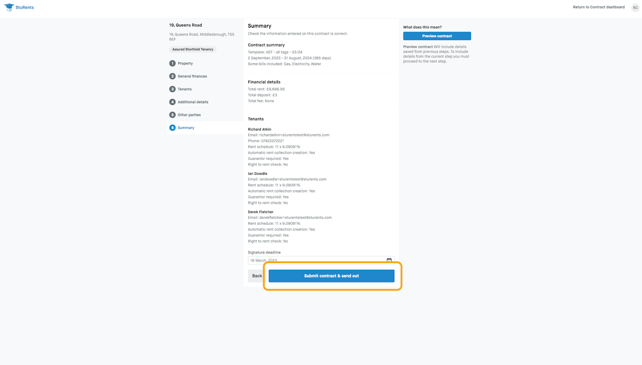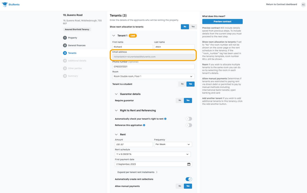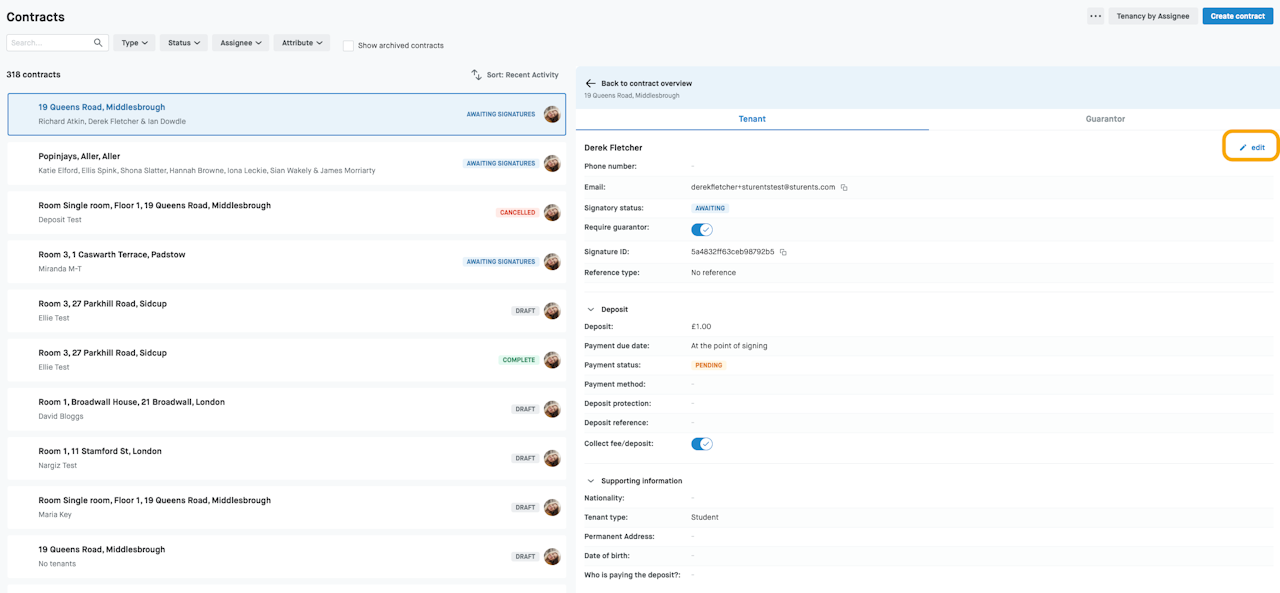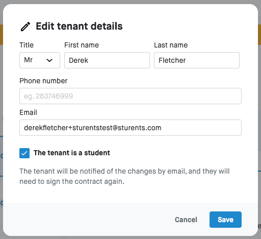 You can then edit the tenant's email address and click Save to send out to the contract to this new email address.