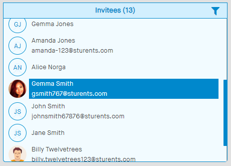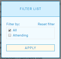 Click on the filter icon to filter by all invitees or by those that are attending.