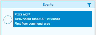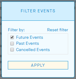 Click on the filter icon to filter by future events, past events, and cancelled events.