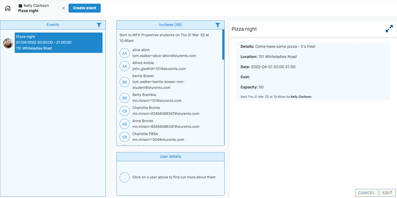 From the Events dashboard, under People section, you can manage existing events and create new ones.