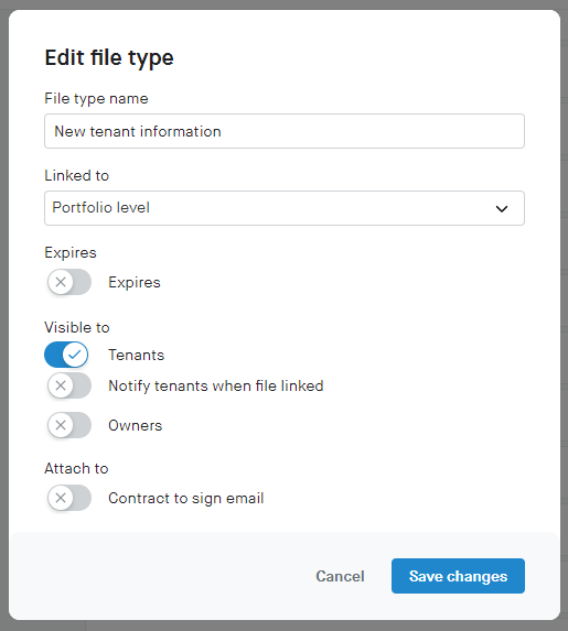 Custom file types can be created and used for any other file that you want tenants or Owners to have access to from their accounts.