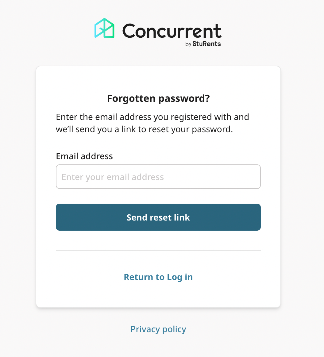 Enter the email address associated with your account and click the Send reset link button