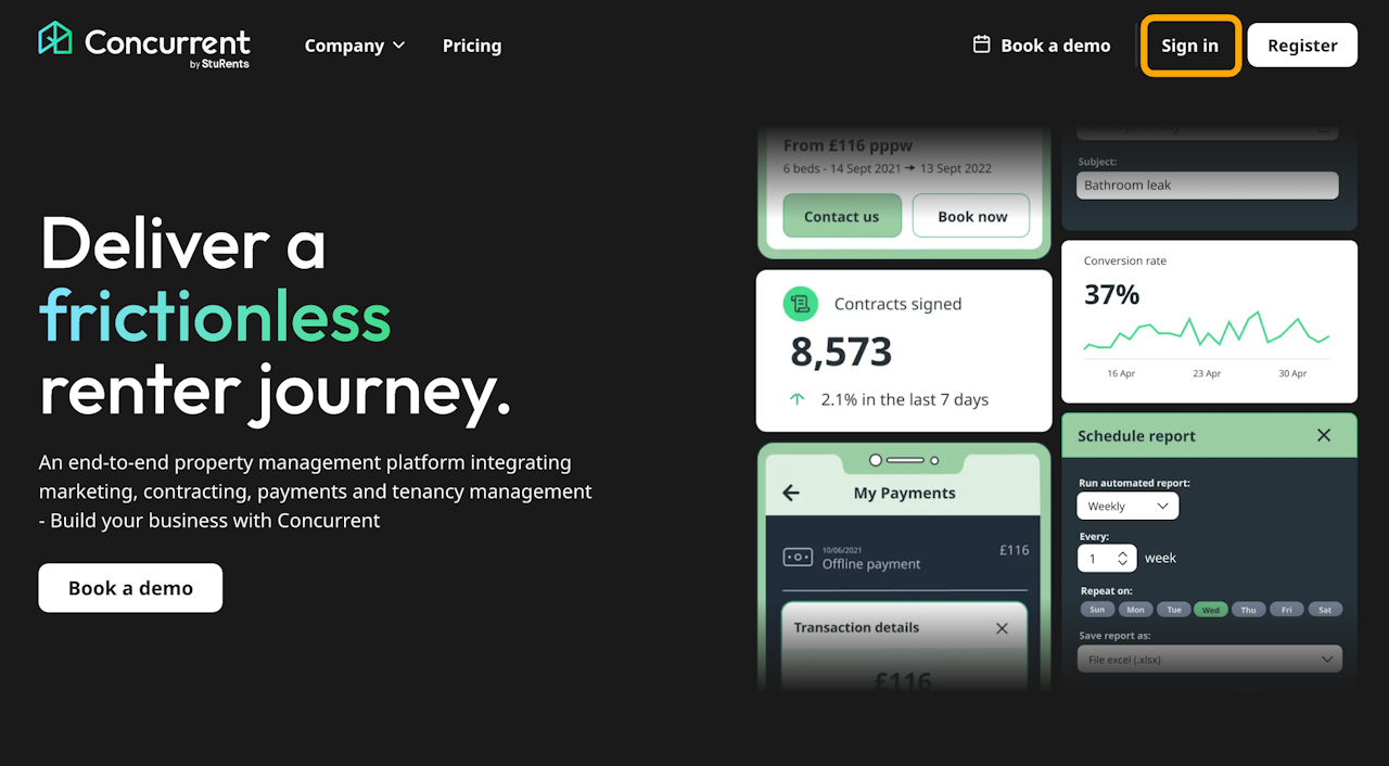 Click the Sign in button in the top right corner on Concurrent.co.uk