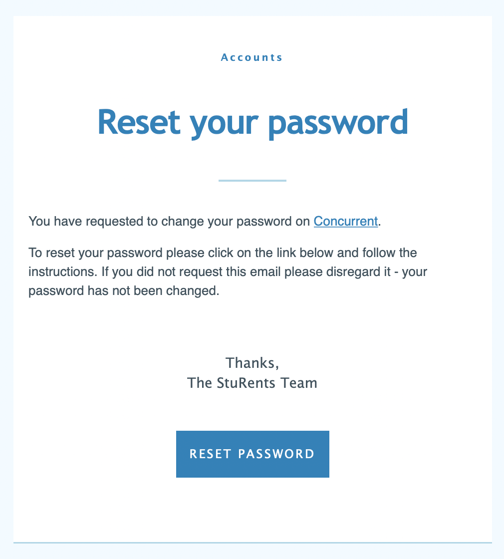 When you receive the email to reset your password, click the Reset password button