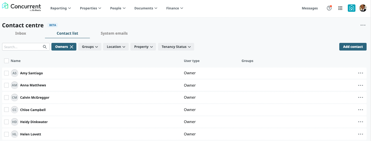 Owners can be linked to properties in your portfolio. Once an owner is linked to their properties:
