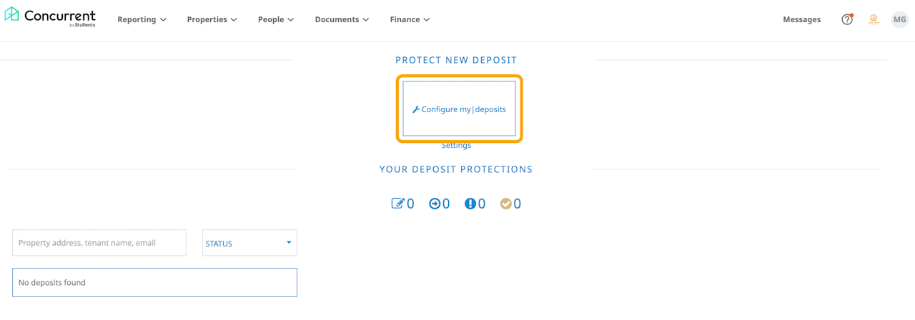 Click the Configure my|deposits button.