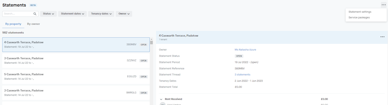 The Statement settings page can be accessed by clicking the [...] menu icon in the top right corner on the Statement of Accounts dashboard.