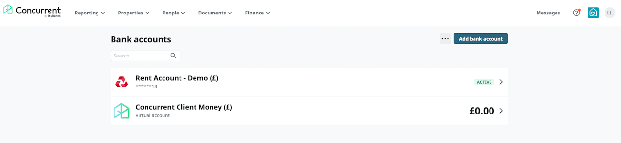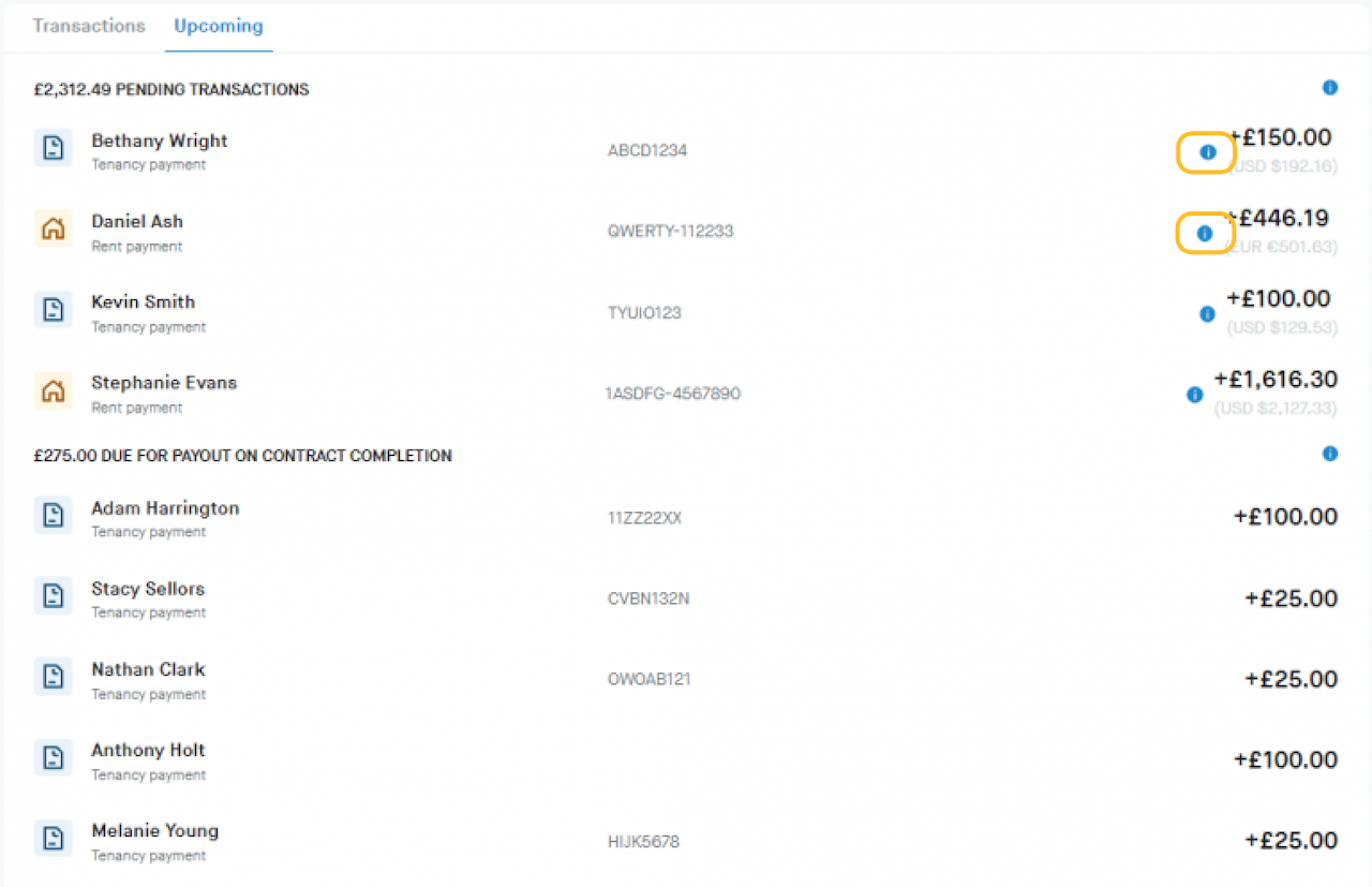 The Concurrent client money account shows all payments collected via Concurrent, including completed transactions and upcoming transactions. It also shows when collected payments have been paid out to your creditor accounts.