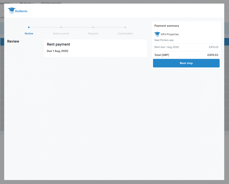 The payment is initiated and the tenant is redirected to their bank in same internet browser tab.