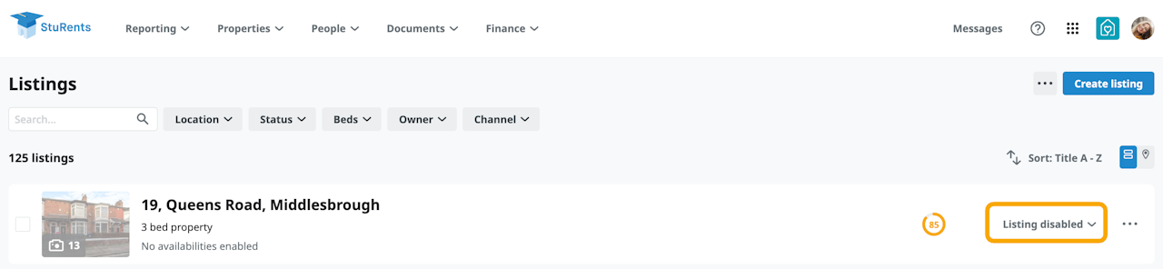If your listing was disabled then don’t forget to enable it by clicking the grey “Disabled” button and selecting “Enable availability”.