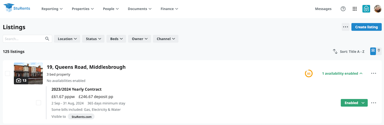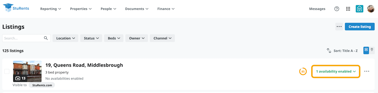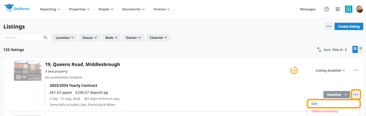 If your property has no enabled availabilities click on the grey text “Listing disabled” to see a list of your contract terms (availabilities).