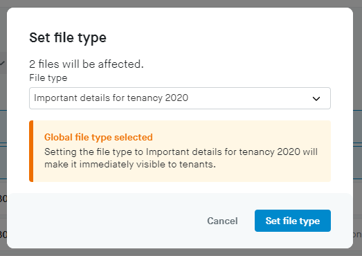 Set the file type - Additional actions may be available depending on the file type set, such as the property or room the file should be linked to.