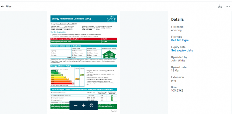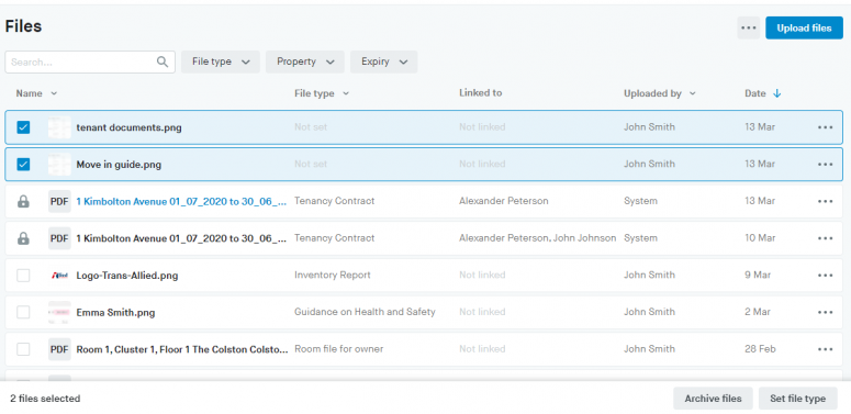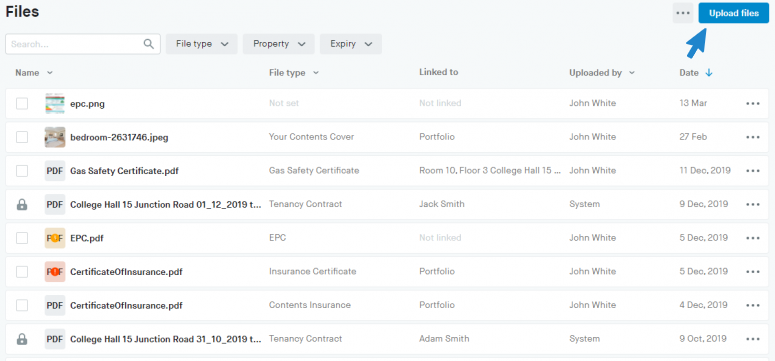 You can upload files relating to the property or tenancy that can be accessible by tenants and owners. On your File Manager dashboard, click the Upload file button in the top right corner of the page.